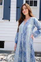 An effortless statement piece inspired by breezy days on the coast, the Kali Maxi is designed for relaxed elegance with a timeless New England feel. Featuring a flattering V-neckline and easy, flowy silhouette, this maxi moves beautifully with every step. The soft blue-and-white print evokes classic Nantucket charm—sun-washed, serene, and endlessly wearable.