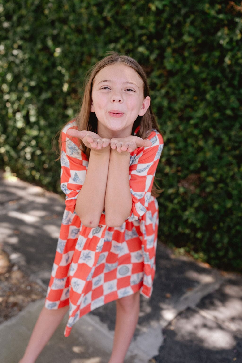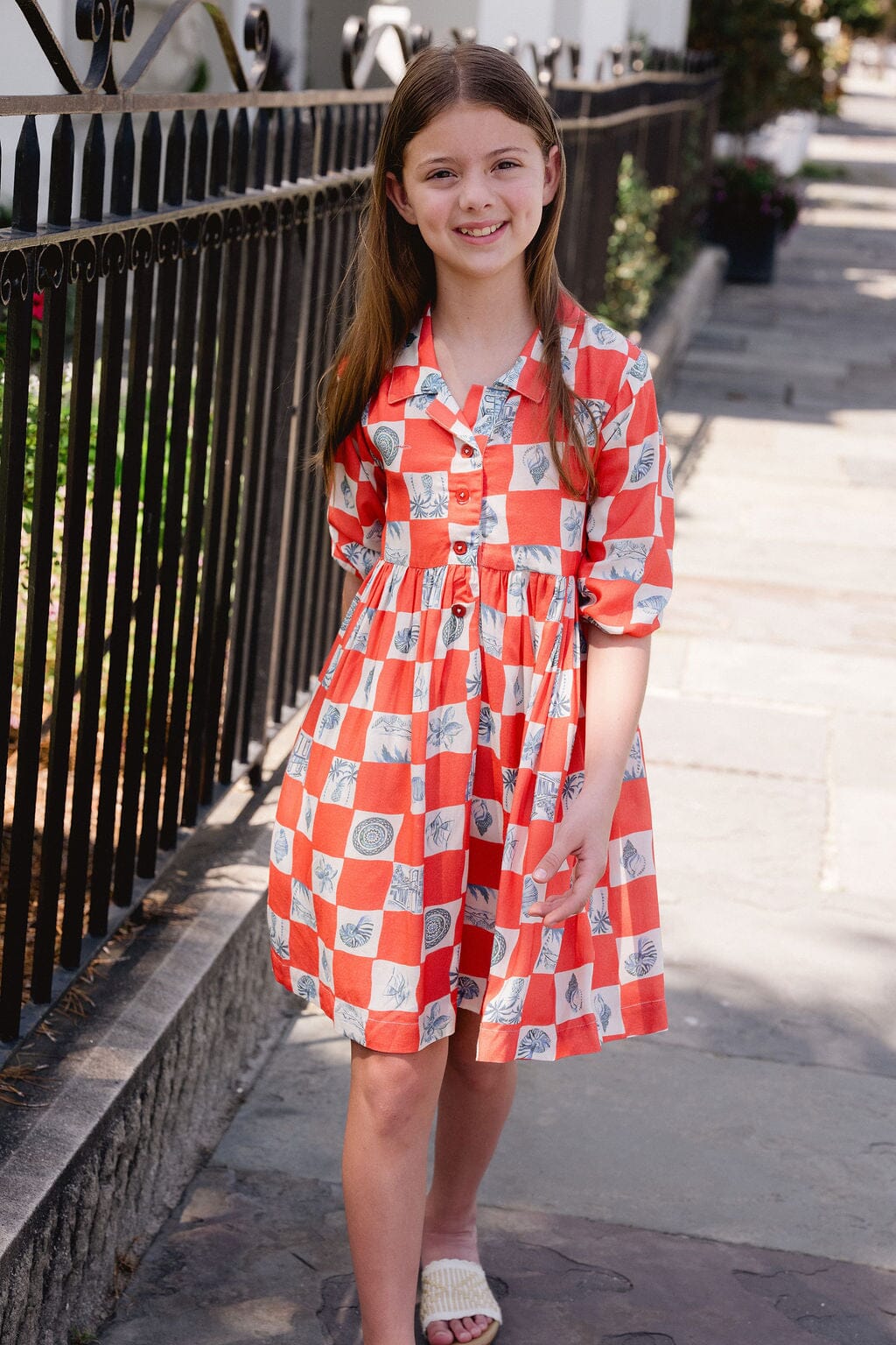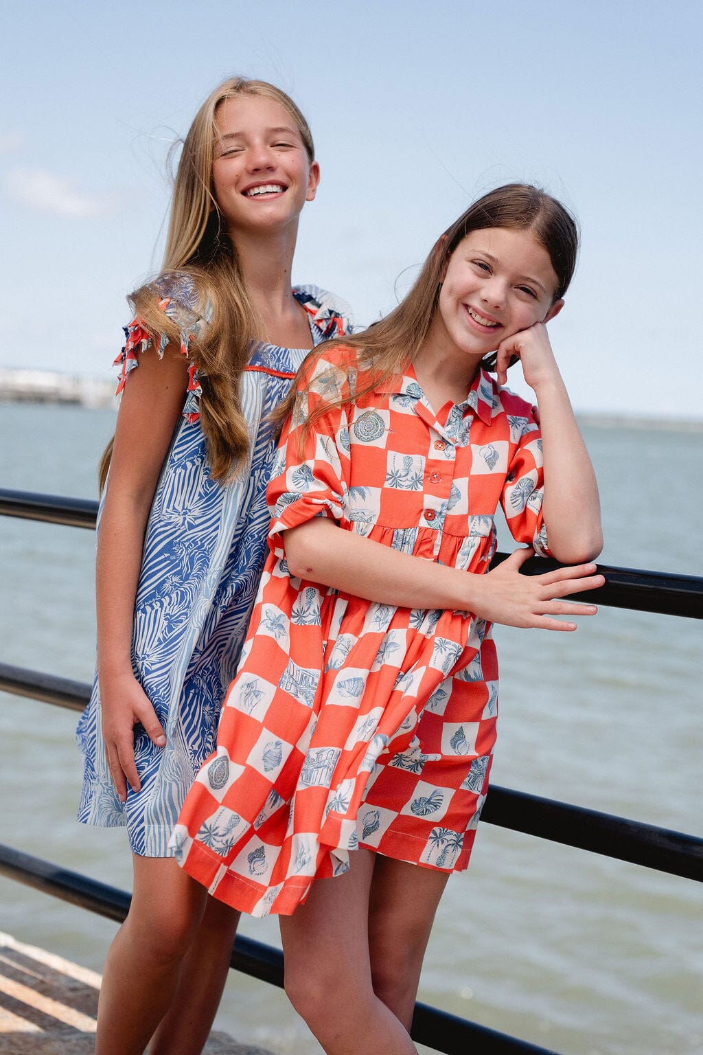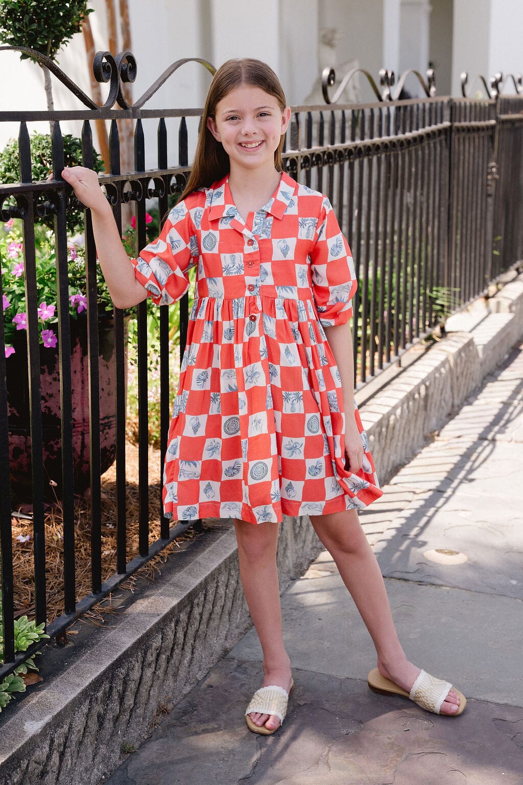 The Rachel Dress is a timeless favorite designed for everyday charm and special summer moments alike. Featuring our signature Nantucket-inspired checkerboard print, this dress blends playful color with classic coastal motifs for an effortlessly polished look. The button-front bodice and softly gathered skirt create a comfortable, easy-to-wear silhouette, while the lightweight fabric keeps her cool all day long.