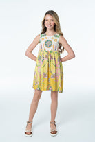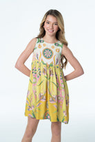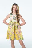 Finished in a vibrant floral print with cheerful yellow tones and pastel accents, the Dahlia Dress is perfect for school events, celebrations, vacations, and everyday twirls. Pair with sandals for a casual daytime look or dress it up with flats for a more polished finish.